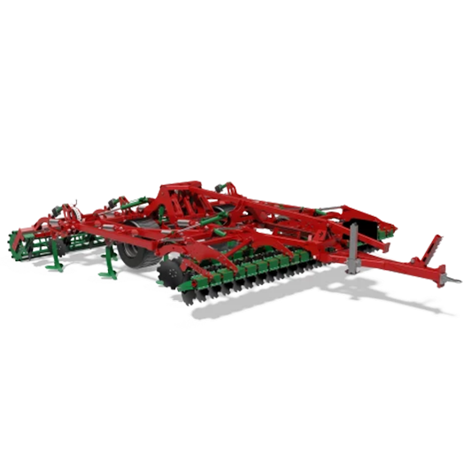 - Sekcja talerzy wyrównujących z talerzami o średnicy 460 mm zapewnia równomierne rozprowadzenie gleby i wyrównanie powierzchni pola.