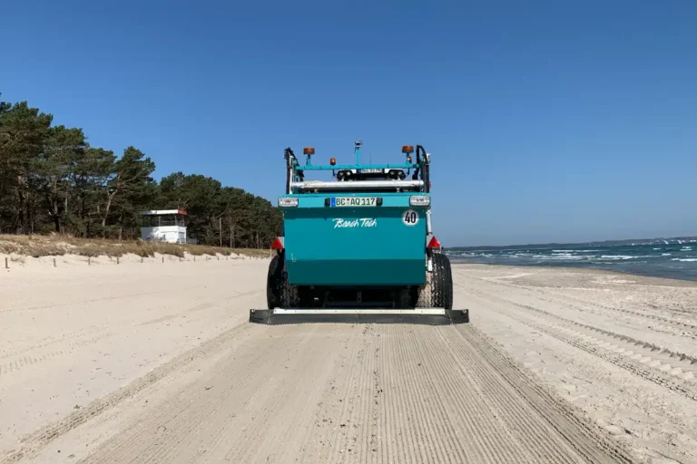 - Estetyczne wykończenie plaży – po przejściu maszyny plaża nie tylko zostaje oczyszczona, ale również wygładzona, co jest szczególnie istotne na plażach turystycznych i kąpieliskach.