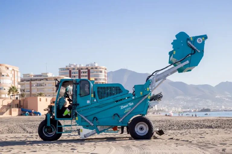 Aby zapewnić wygodę pracy nawet w najbardziej wymagających warunkach pogodowych, BeachTech 5500 wyposażono w przestronną i nowoczesną kabinę operatora. Przemyślana ergonomia i wysoki standard wykończenia wpływają na komfort użytkowania podczas długich godzin pracy na słońcu.