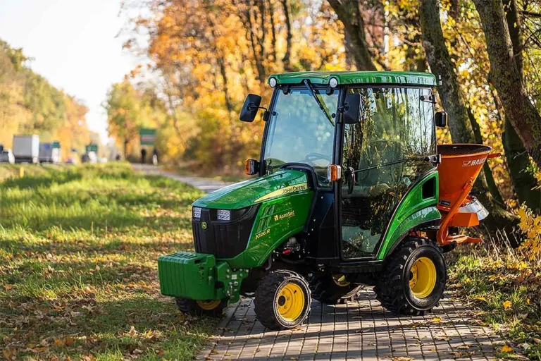 Potrzebujesz posypywarki na zbliżający się sezon? Skorzystaj z wyjątkowej oferty na zestaw: ciągnik John Deere 1026R z posypywarką Rauch – już za 1615 zł miesięcznie w racie 0%!
