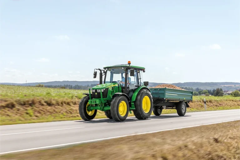 Ciągnik John Deere 5075E napędza turbodoładowany silnik 2,9 l, przystosowany do całorocznej pracy w trudnych warunkach. System wtrysku Common Rail i elektroniczne sterowanie optymalizują spalanie, zapewniając wysoką wydajność i oszczędność paliwa. Silnik osiąga 2100 obr./min, generując wysoki moment obrotowy przy minimalnym zużyciu paliwa, co gwarantuje niezawodność nawet pod dużym obciążeniem. Dzięki zgodności z normami Stage V, ciągnik łączy moc z ekologicznymi rozwiązaniami.