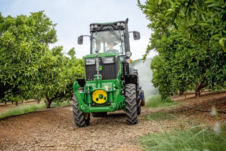 Specjalistyczny ciągnik 5090GN pozwala na bezkolizyjne przejazdy w sadach i winnicach, a moc i niewielkie zużycie paliwa gwarantują niesłychaną wydajność.