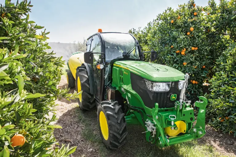 Co decyduje o niesamowitej wydajności tego ciągnika? Duża moc silnika, wydajny układ hydrauliczny zasilany przez trzy pompy o łącznym przepływie 126 l/min, dwa mechaniczne i do czterech elektrohydraulicznych zaworów SCV, przedni i tylny WOM oraz mocne podnośniki. Do tego specjalna konstrukcja umożliwiająca pracę pod niskimi pergolami czy gałęziami sprawia, że jest to niezastąpiona maszyna do zastosowań w tych specyficznych warunkach.