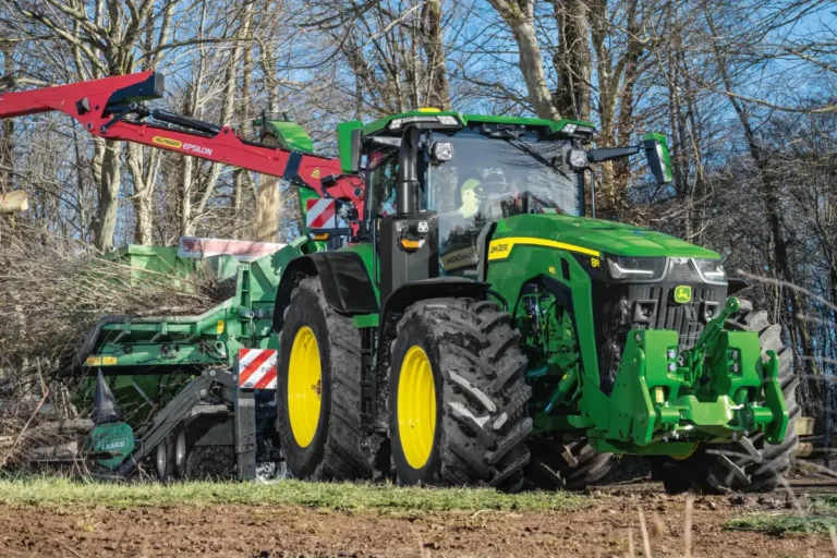 John Deere 8R 410 z przekładnią eAutoPowr™ to ciągnik dla użytkowników, którzy oczekują jednocześnie mocy, precyzji i niezawodności – niezależnie od tego, czy pracują na polu, czy na placu budowy. Przekładnia ta nie tylko podnosi komfort operatora, ale przede wszystkim zwiększa wydajność całego gospodarstwa lub firmy.
