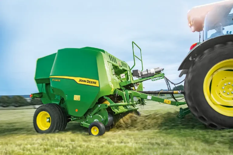 Prasa F441M została zaprojektowana do efektywnego prasowania różnych rodzajów upraw, od długiej słomy po krótką i lepką kiszonkę. Dzięki systemowi zgarniaka z krzywką, materiał jest sprawnie podawany do rotora, bez ryzyka przycinania, co przekłada się na płynne i wydajne belowanie.