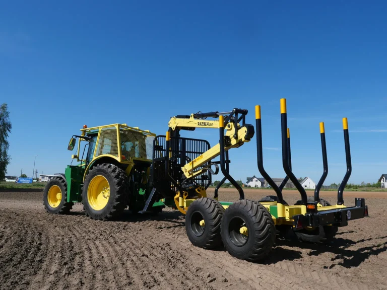 Przyczepa leśna 104 + Ładowacz 204T + Chwytak do drewna proG20