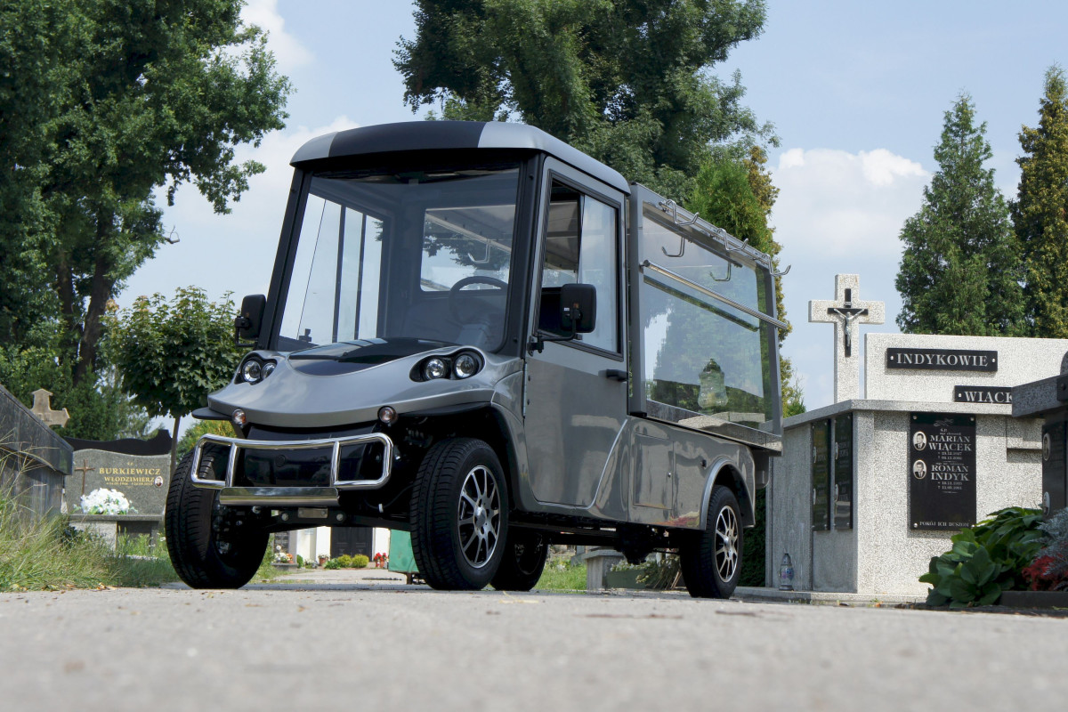 - Zadaszona, elektronicznie wysuwana platforma na trumnę