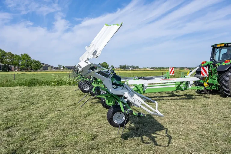 - Możliwość regulacji ustawienia kół pozwala na precyzyjne dopasowanie maszyny do rodzaju terenu i potrzeb użytkownika. Wpływa to bezpośrednio na szerokość rozrzutu zielonki oraz jakość jej rozłożenia. Dzięki temu można uzyskać optymalne warunki dosychania paszy na każdym rodzaju podłoża.