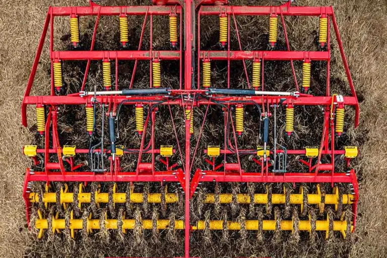 - Podwójna intensywność uprawy – gleba, która opadnie po pierwszym przejeździe, jest ponownie obrabiana przez ten sam ząb. To powoduje efektywniejsze rozdrobnienie brył i dokładniejsze wymieszanie resztek pożniwnych.